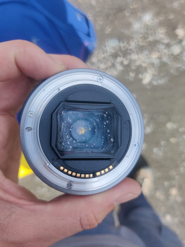 Sau ärgerlich, ich versuche das meiste Wasser rauszubekommen, schreibe das Objektiv aber schon ab. Zum Glück ist meine Stimmung so gut, dass selbst das ihr nichts anhaben kann.