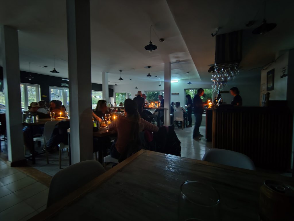 Die Restaurants sind voll, aber auch stromlos. Zum Glück ist warmes Essen trotzdem kein Problem. Irgendwann kommt auch der Strom wieder, und es gibt Applaus. Leider hält der nur für eine halbe Stunde.