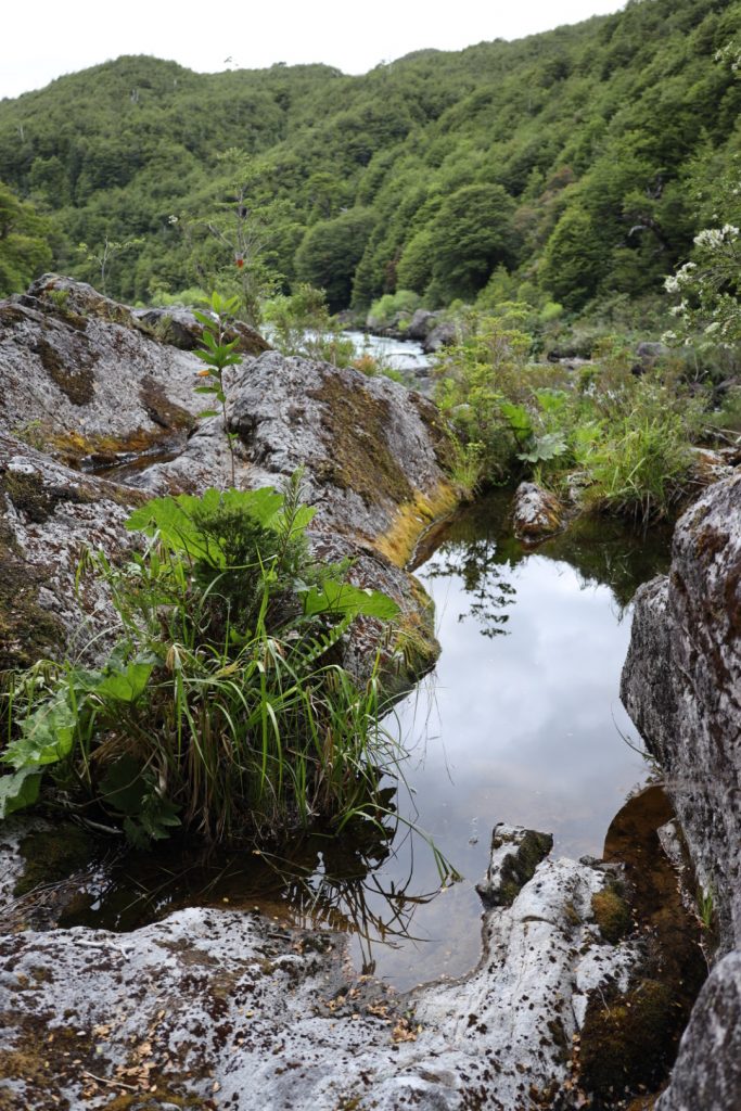 José erzählt mir, wie er hier hergekommen ist, selbst radelnd, aus dem Norden Chiles. Er baut die Pfade aus Spaß und Naturliebe, oder wenn er gerade wieder auf der Suche nach den Kühen ist, die scheinbar ein ganz gutes Gespür haben, für die richtigen Wege.